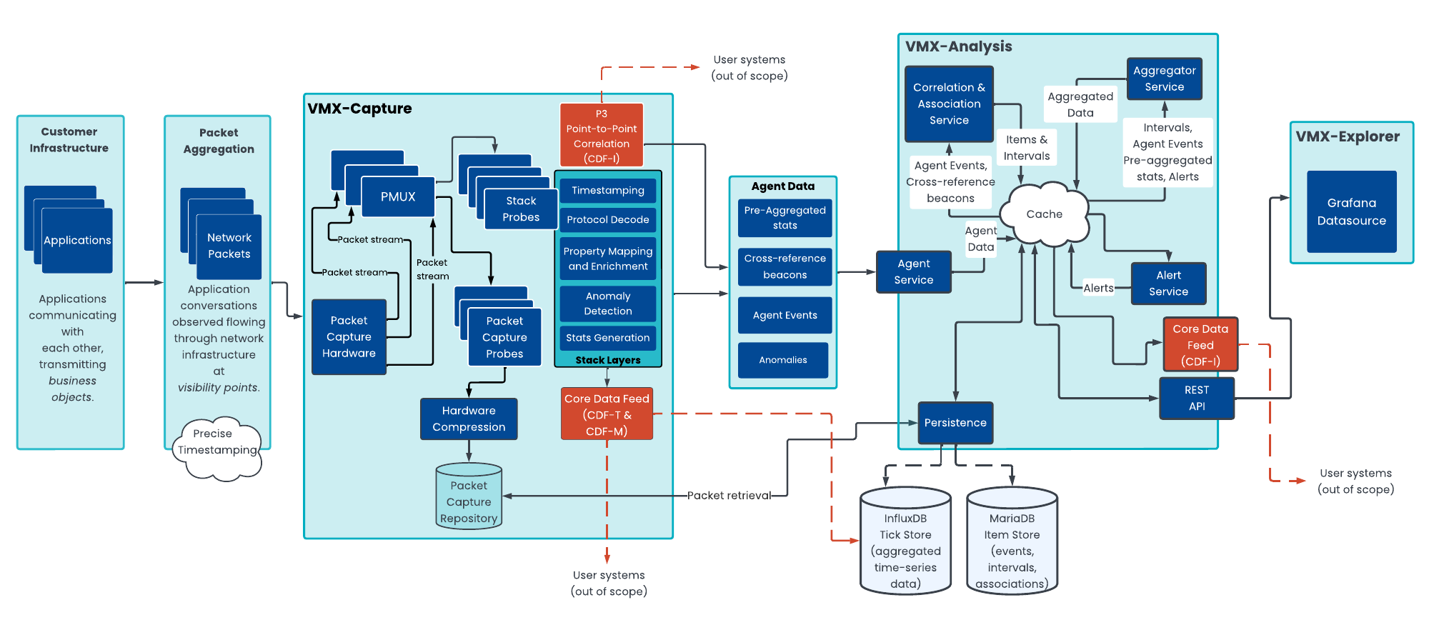 See the Configuration Guide for VMX-Capture for more information on the P3 process and the pre aggregation and pre correlation that can be performed at extremely high volumes within VMX-Capture. The P3 process is the part of the VMX-Capture software which is capable of publishing a CDF-I stream.