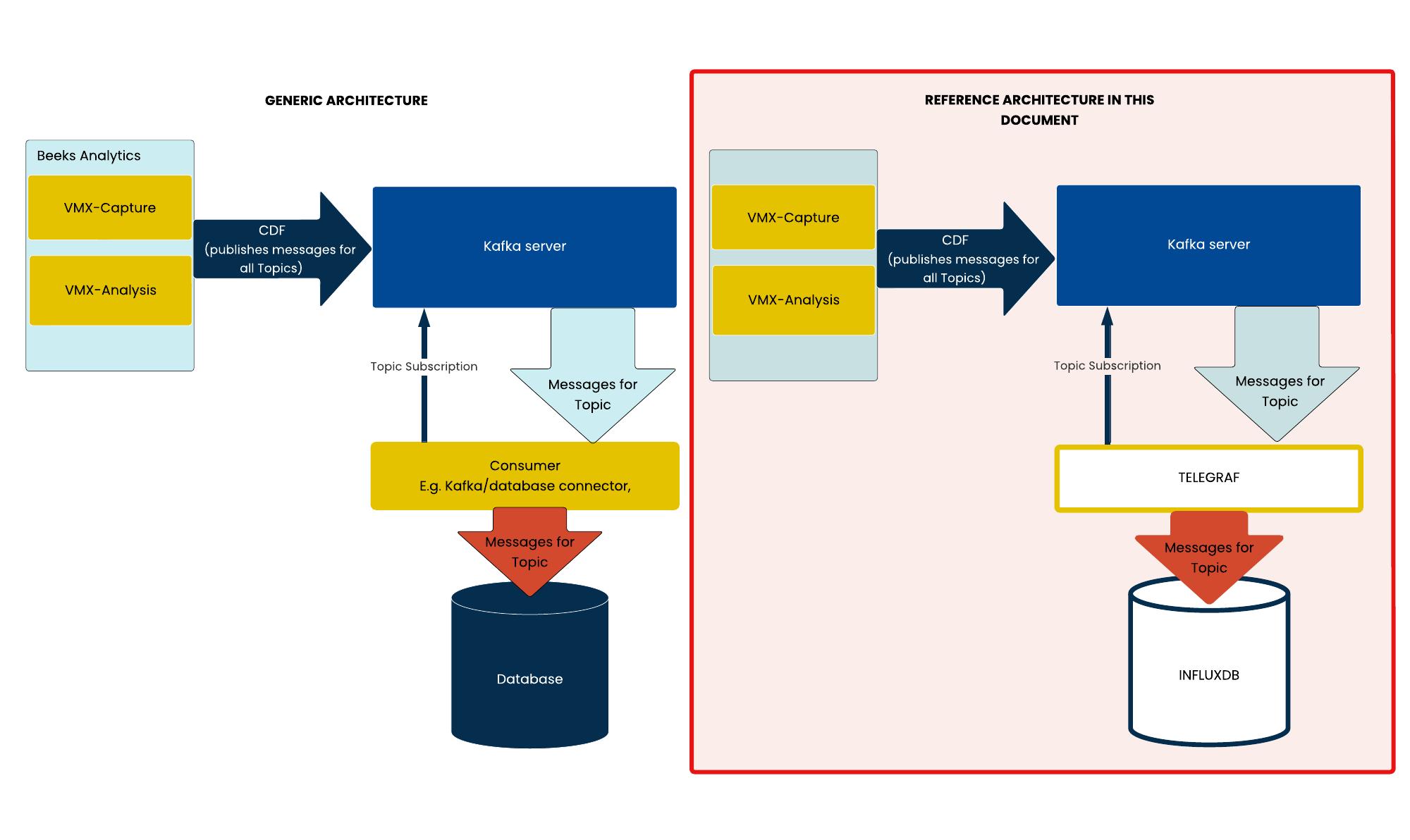 Ready-to-use Kafka connectors are widely available and you can build your own using Kafka’s Consumer API. The examples in this document use Telegraf as a Consumer to write messages to an InfluxDB database.