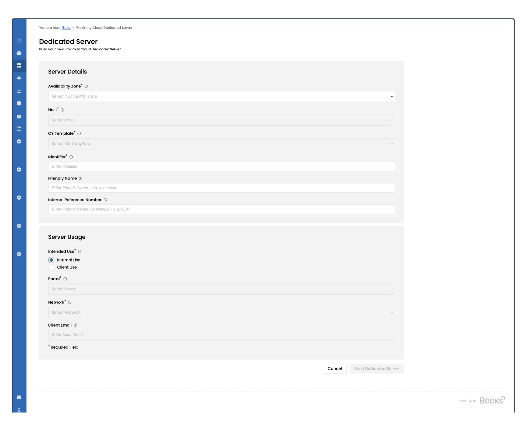 Internal Ref No. | Server Details | Enter your own internal reference to be used for the newly created compute. This could be an Account Number to keep track of your own client billing for example. |