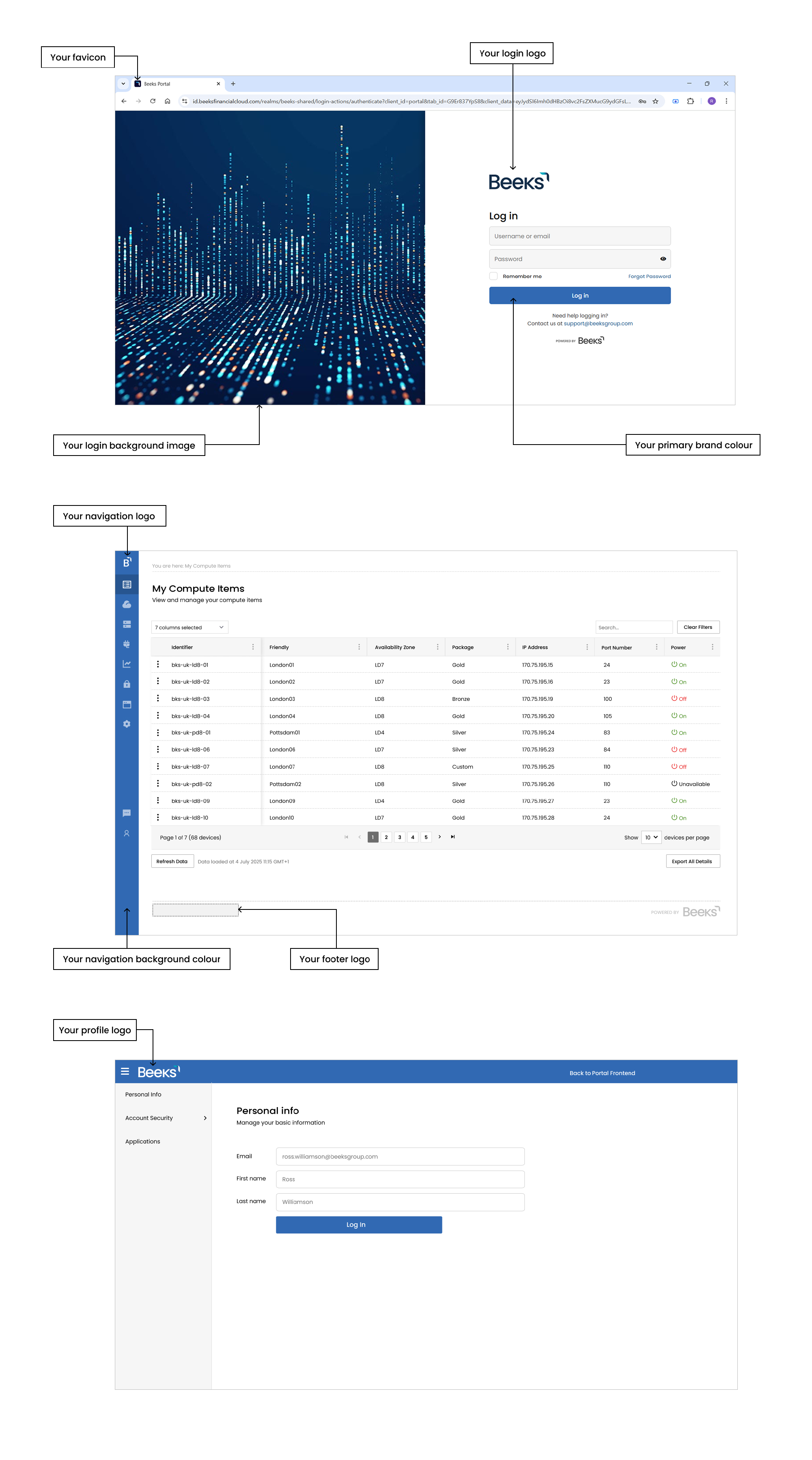 As well as the look and feel customisations listed above, you can also request customisations to certain textfields and link targets throughout the portal.