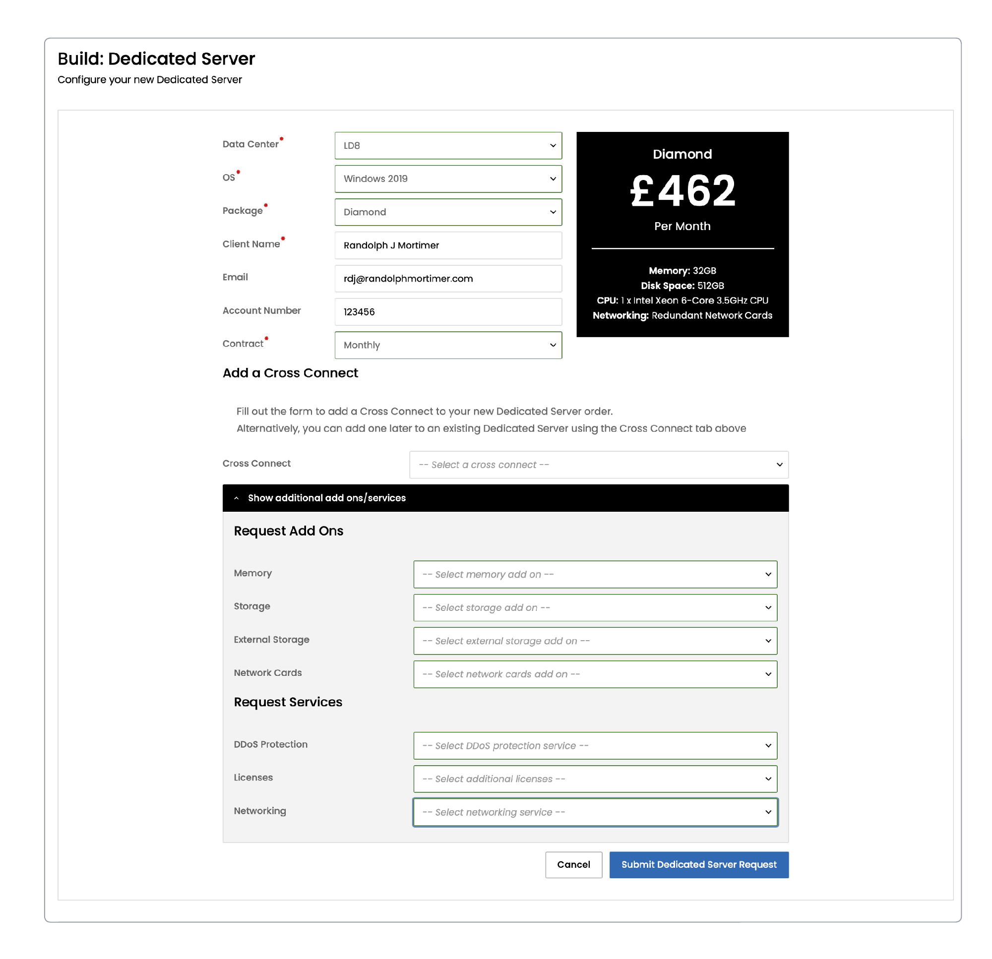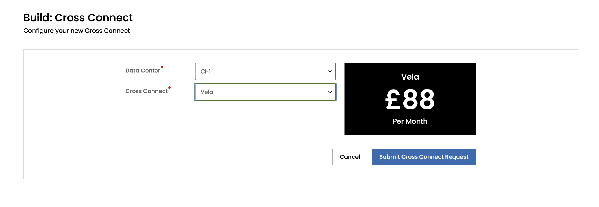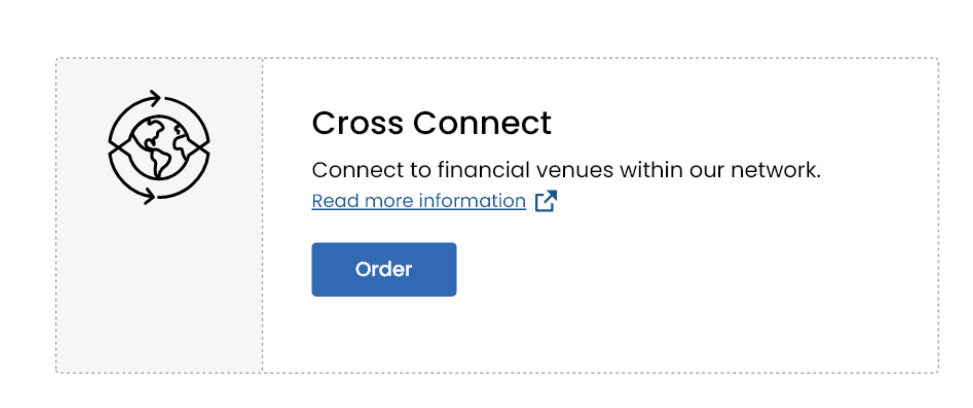 Select Order on the Cross Connect tile and you will be redirected to a form with customisation options.