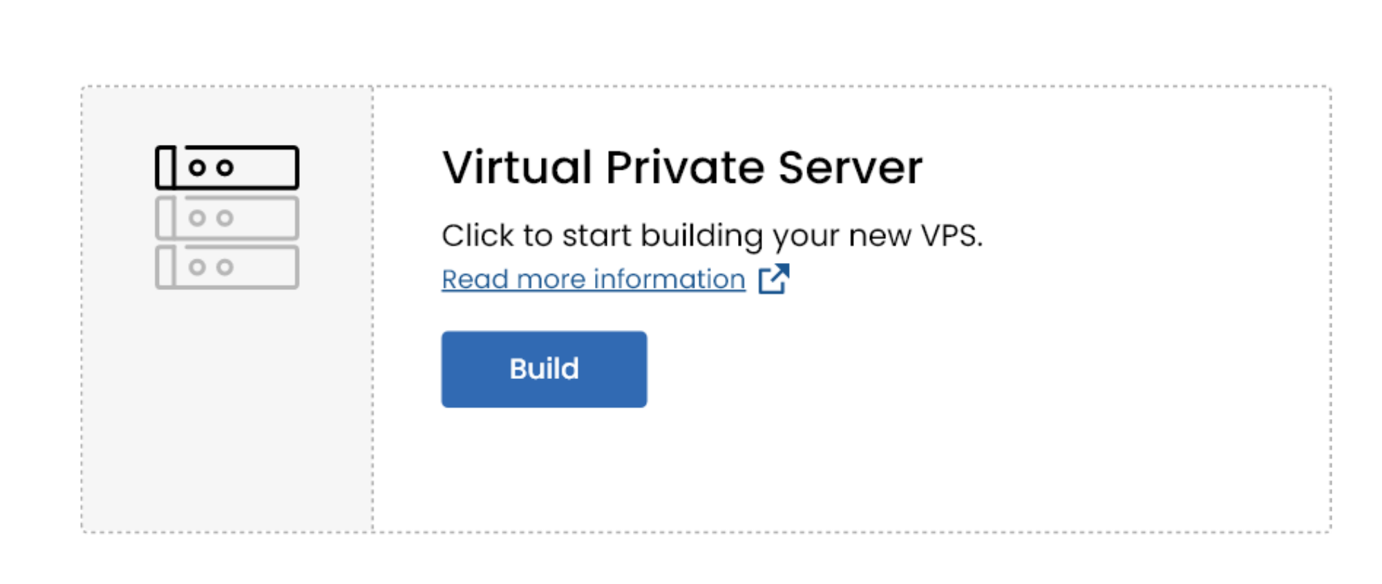 Select Build on the Virtual Private Server tile to open a configuration form.
