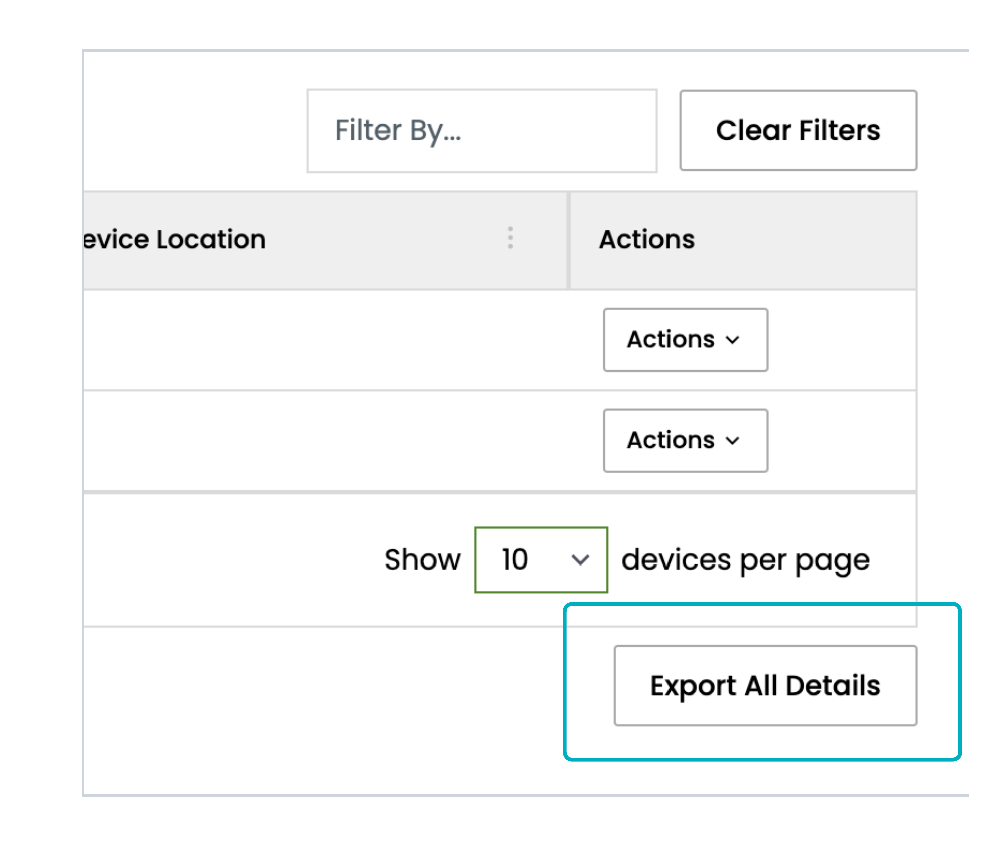 To export all data in the grid as a .csv file, select the Export All Details button below the table.