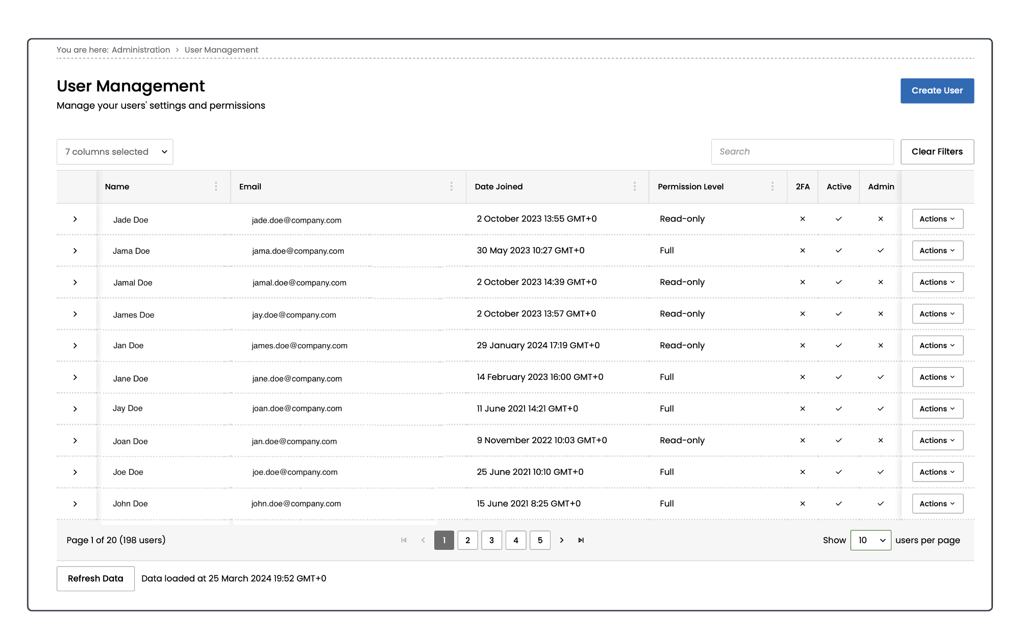 In Administration > User Management, you’ll see a list of all your Portal users.