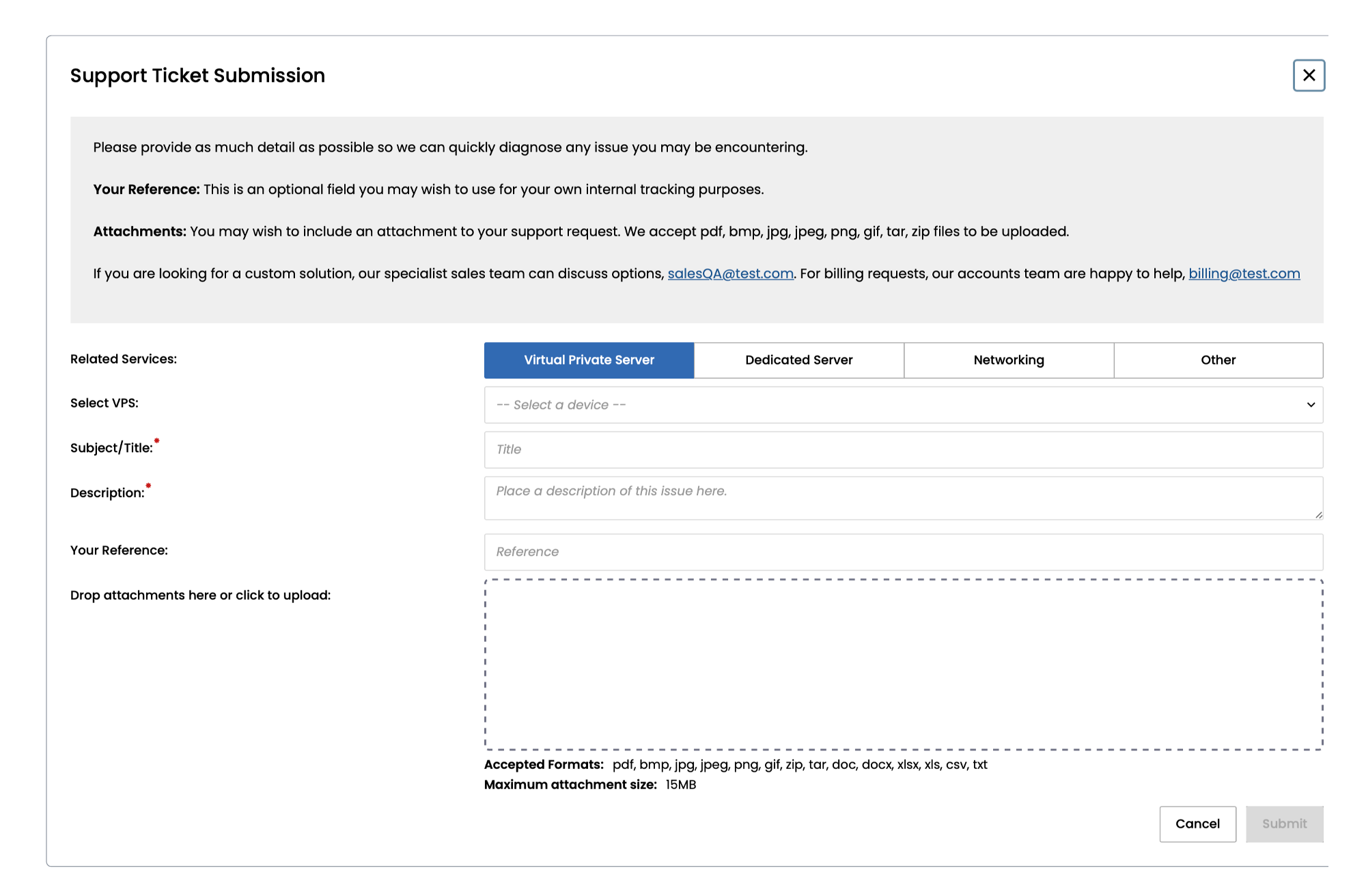 Select the Create a Ticket button to open a new ticket. When raising a support request, please provide as much background information as possible to help us quickly diagnose the issue. If you'd like to upload a document to the ticket, it must be a file of type .doc, .docx, .xls, .xlsx, csv, .txt, .pdf, .bmp, .jpg, .jpeg, .png, .tar, or .zip of maximum size 15 MB.