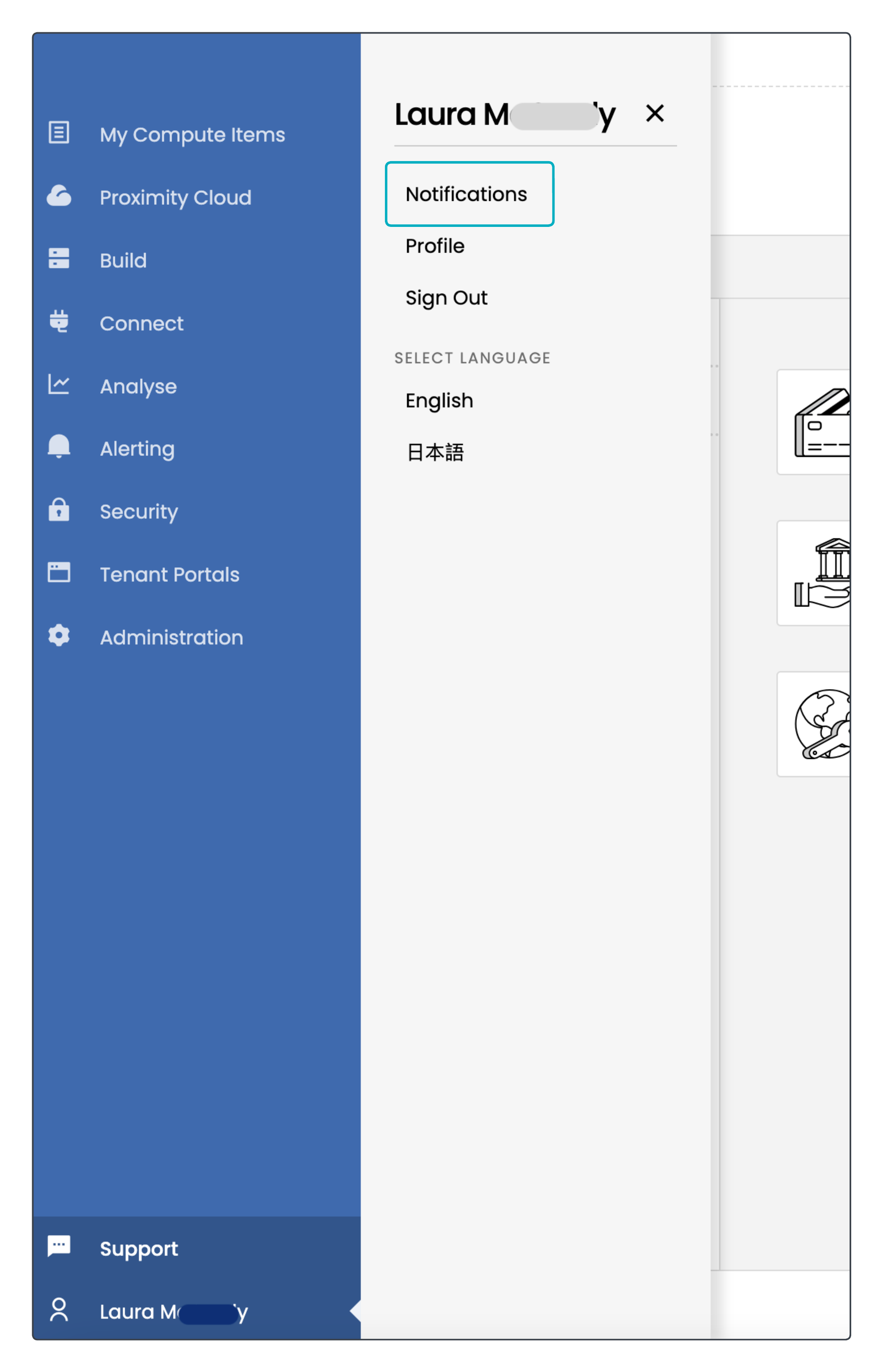 You’ll receive notifications about requests made by users on your Portal. To view the list of notifications, open your profile by selecting [Your name] at the bottom of the main menu and then Notifications.