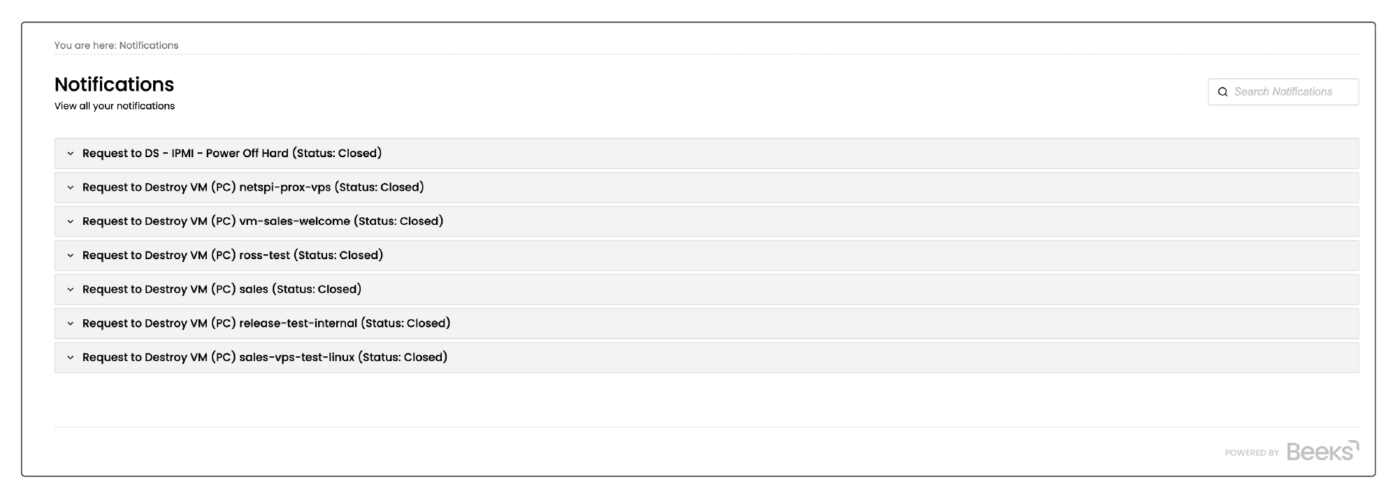 The notifications endpoint provides a list of all of the requests made by users on your Portal.